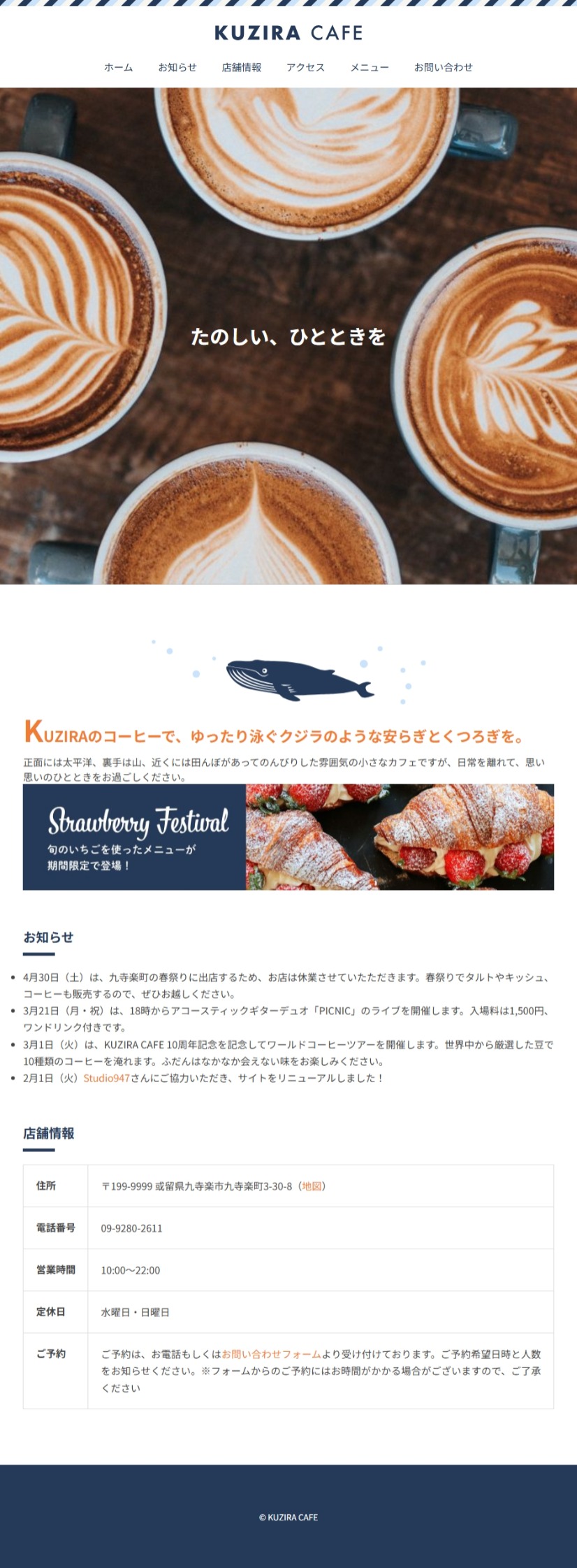 「KUZIRA CAFE」のWEBサイト(個人製作)